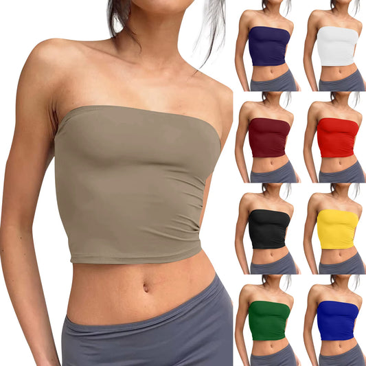 Womens Strapless Crop Tops Basic Backless Sleeveless Bandeau Cute Sexy Tops Trend Street Fashion Classic Solid Tube Tops
